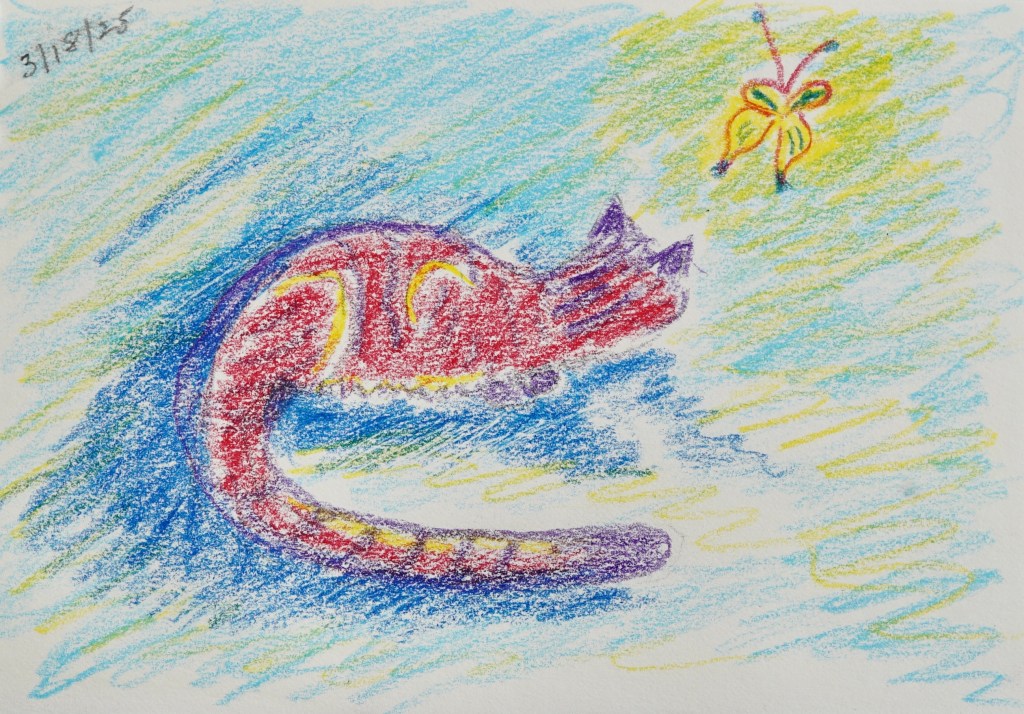 Since his disease is accompanied by eventual weight loss, I am deeply concerned. I decide I’ll provide him with natural food. He loves hunting crickets in the basement and periodically I pick up cricket legs or bodies off the living room floor. Insects are great protein! So I go to the pet store and pick up a box of crickets. It’s food. It’s entertainment. I put the crickets in a large cardboard box. After all, how high can they really jump? I show Buddy the box. He is enthusiastic. So are the crickets. The crickets have a jumping contest urged on by a desire to run for their lives, sort of like running the bulls in Spain. They spread themselves throughout the house. I will be finding them for a long time to come. And finding their body parts. That could have worked better.