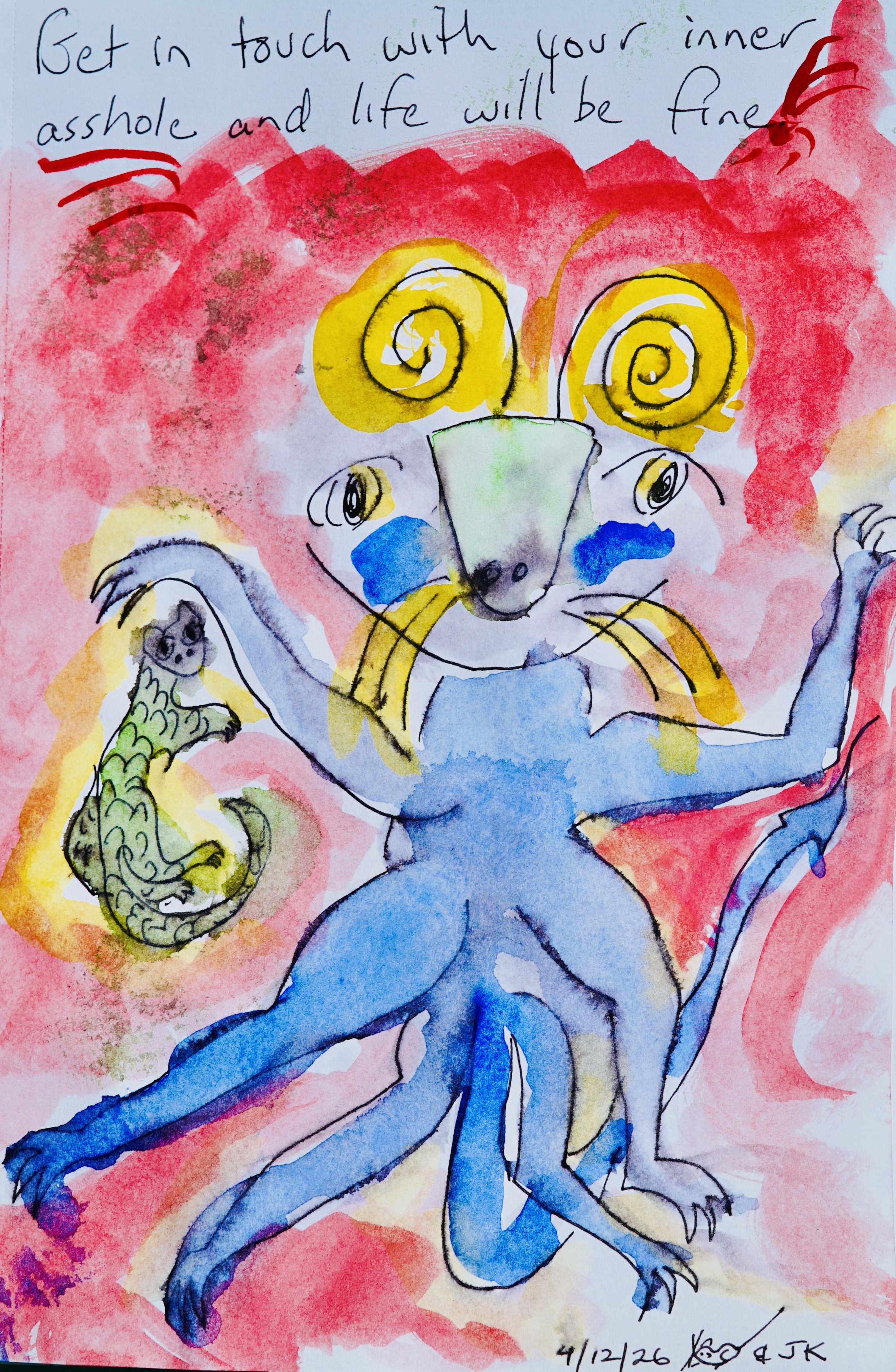 I process anger and grief through my art. I’m feeling these because of worldwide politics, wars, and injustice. I’m okay with negative emotions; they produce action. Their by-product is art and writing, which makes me feel happy again, as does the actions I take to directly change the insanity of our human existence.