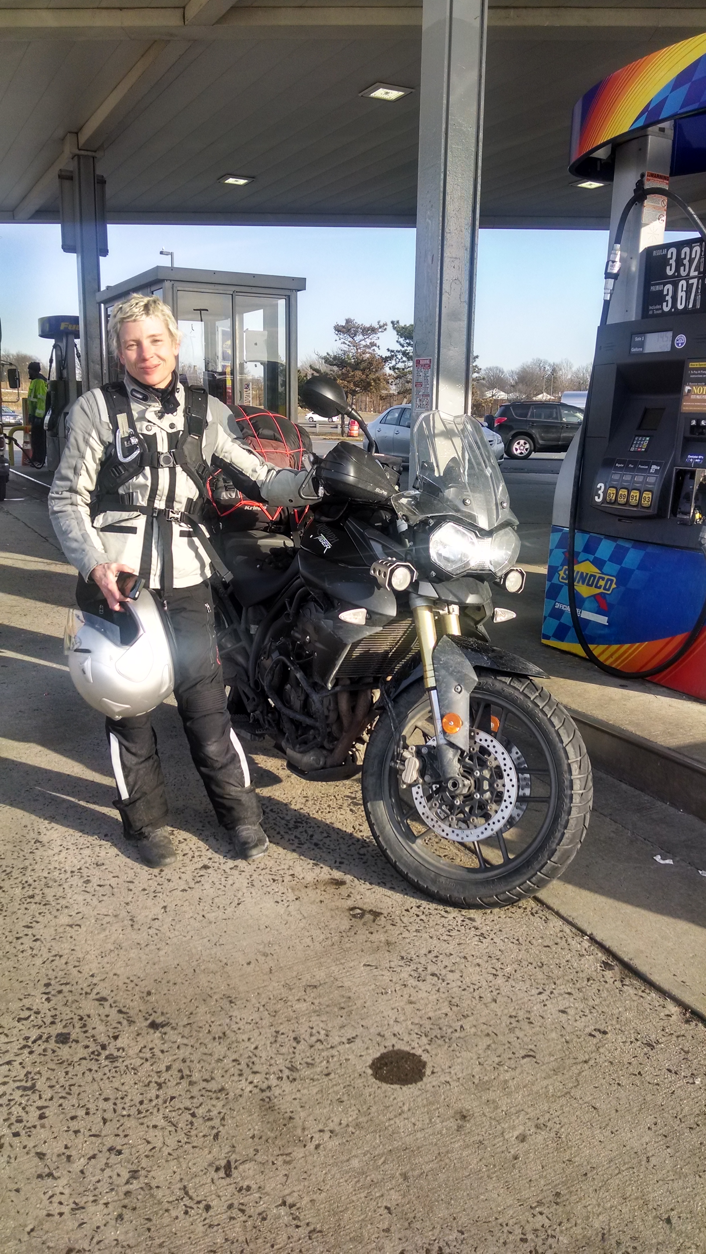 Finally, it was time to kiss Ian goodbye and head back south to Baltimore, husband and cat. At a rest stop on the New Jersey Turnpike, I met Heather Johnson on her Triumph Tiger motorcycle. I admired her motorcycle since I rode motorcycles for about 14 years and was thinking of getting another one. Heather was heading to Mexico and blogging too. Check out her blog – it’s lots of fun. She’s a visual artist who works in whatever is handy, embroidery to photographs and lots in between. The blog is “in search of the frightening and beautiful.”
