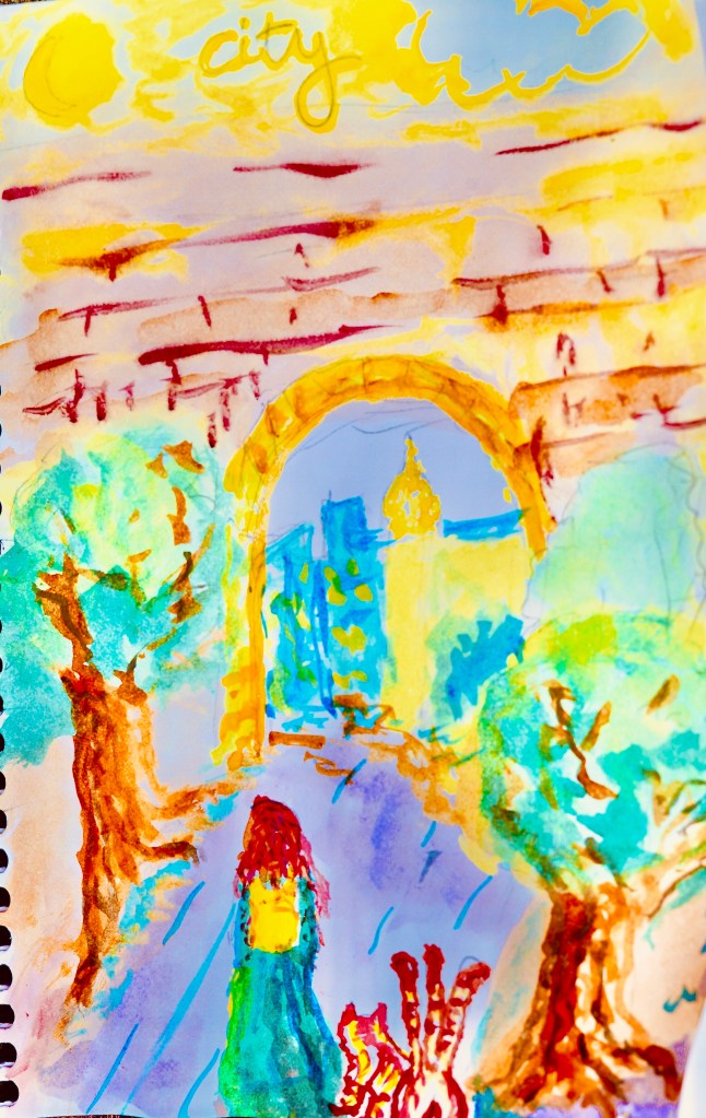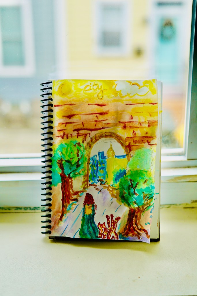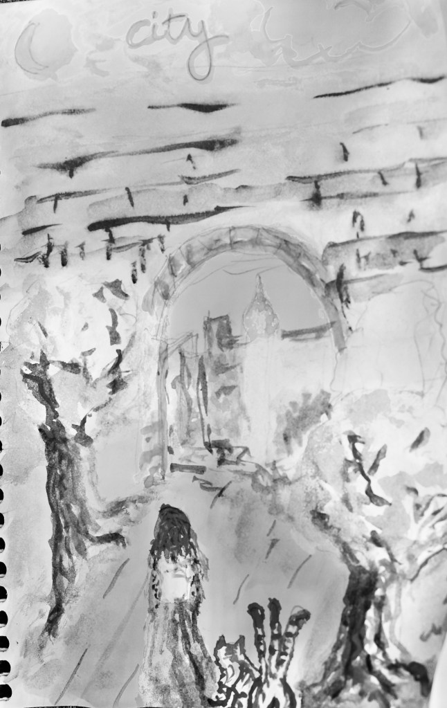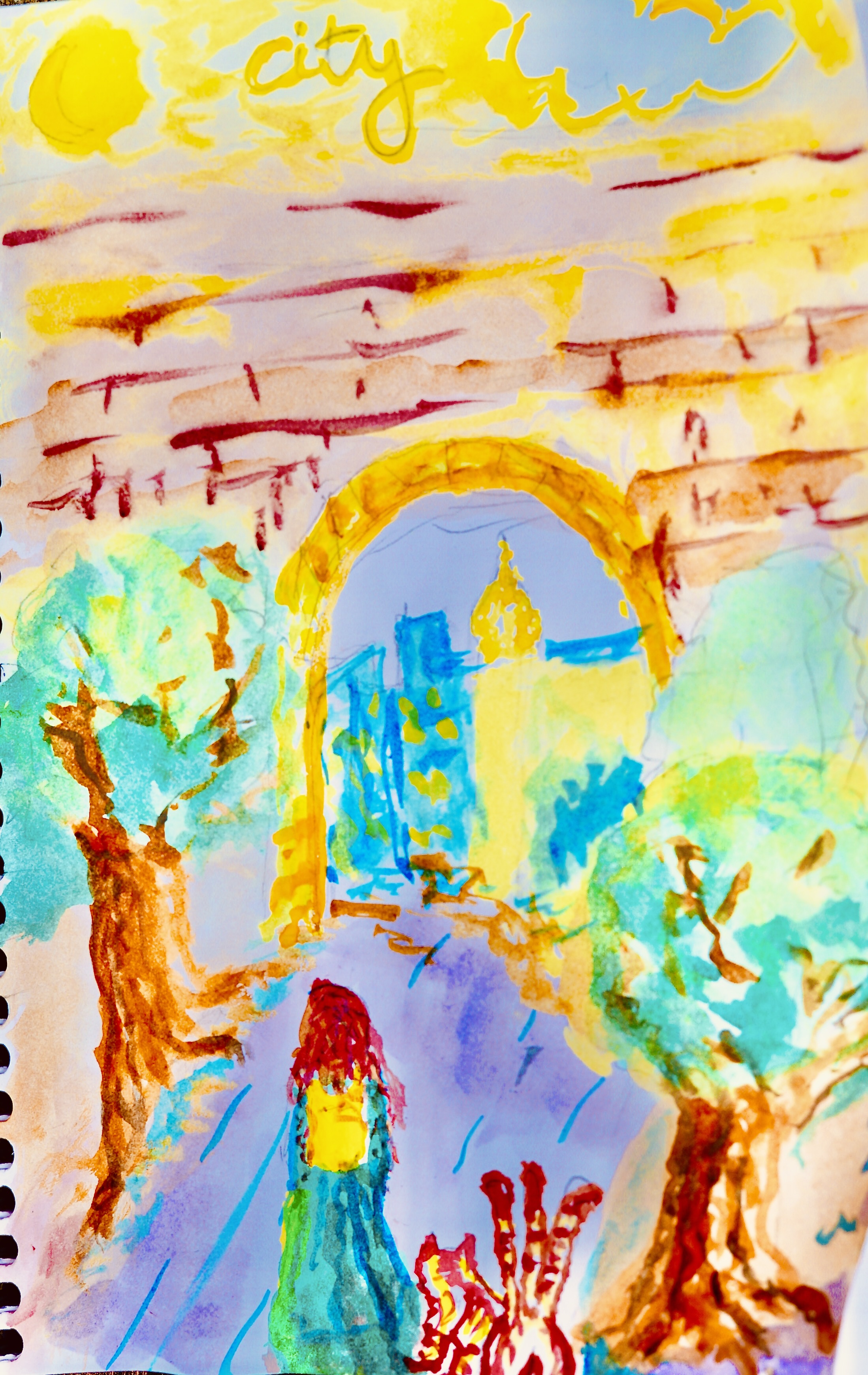 The princess approached the city gates with her three tailed cat. She wondered what might be in store for her in this new world she was entering. She was confident in her righteousness, and strong in her resolve.