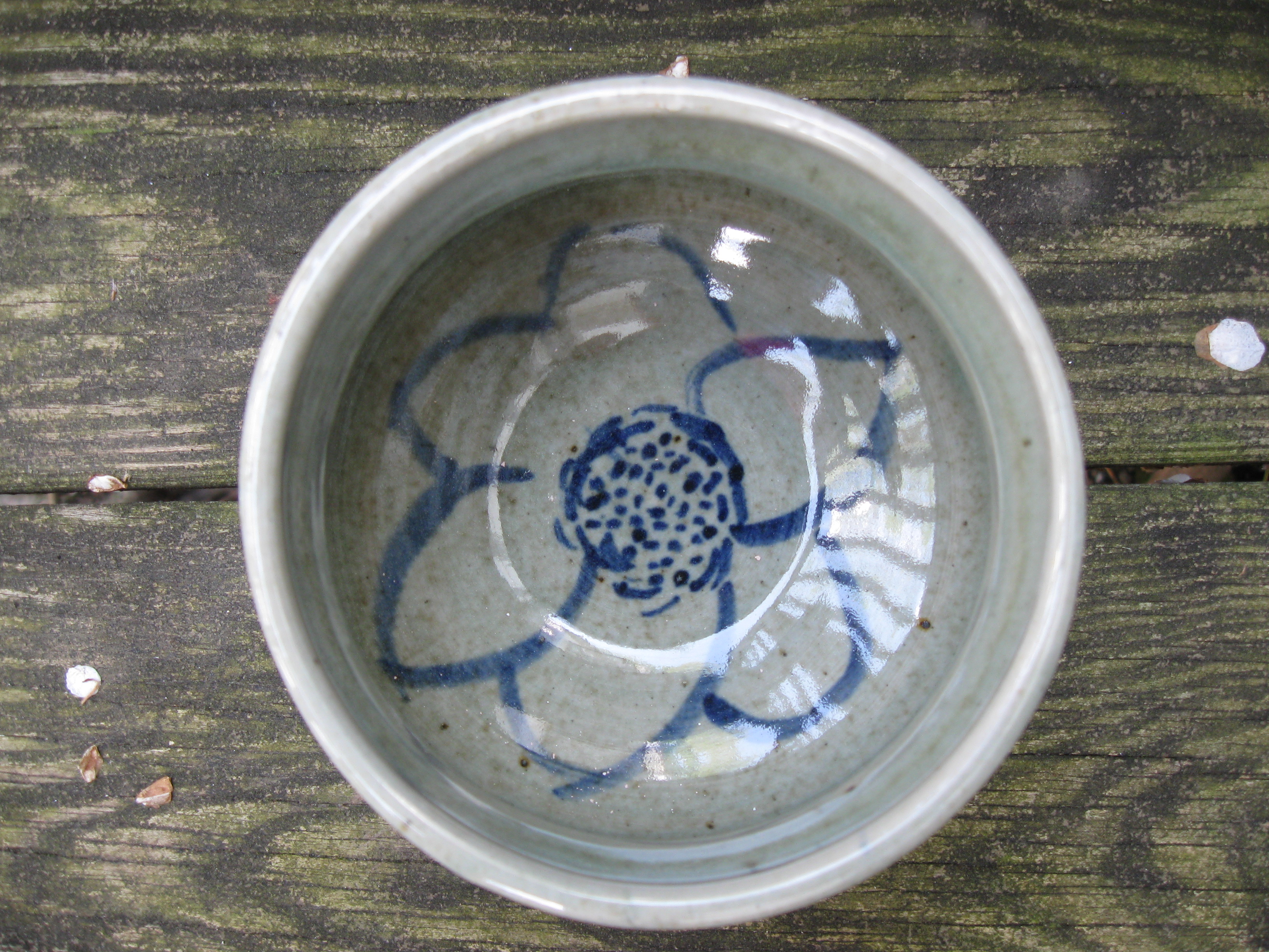 This week I got back some pottery I had recently glazed, although the pieces were thrown on the wheel last spring. I learned how to throw and glaze pots a few years back from Joe Vitek at the Cheseapeake Arts Center. Joe, who has become a good friend, is a master potter and marvelous teacher. The pieces were fired in his gas kiln. Joe puts them in the kiln himself, since the air must flow evenly around all the pieces to fire correctly at extremely high temperatures over several days. Firing takes skill, a bit of luck and alchemy. The glazes don’t look like the colors they will become through fire and chemical reactions so the colors seem magical when they are finally taken out of the kiln.