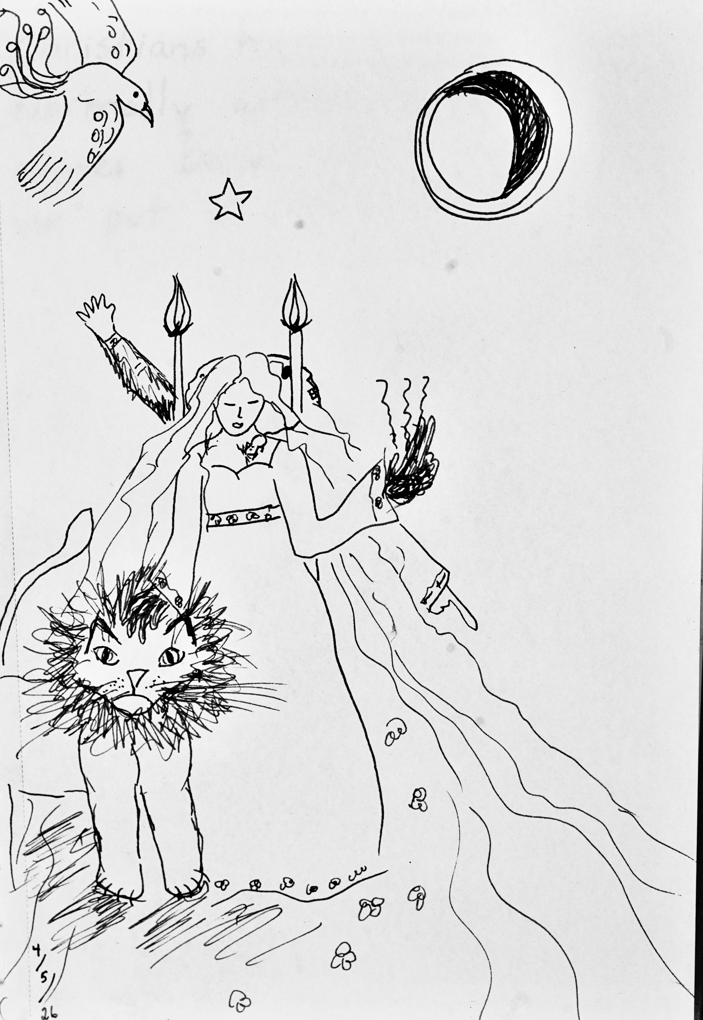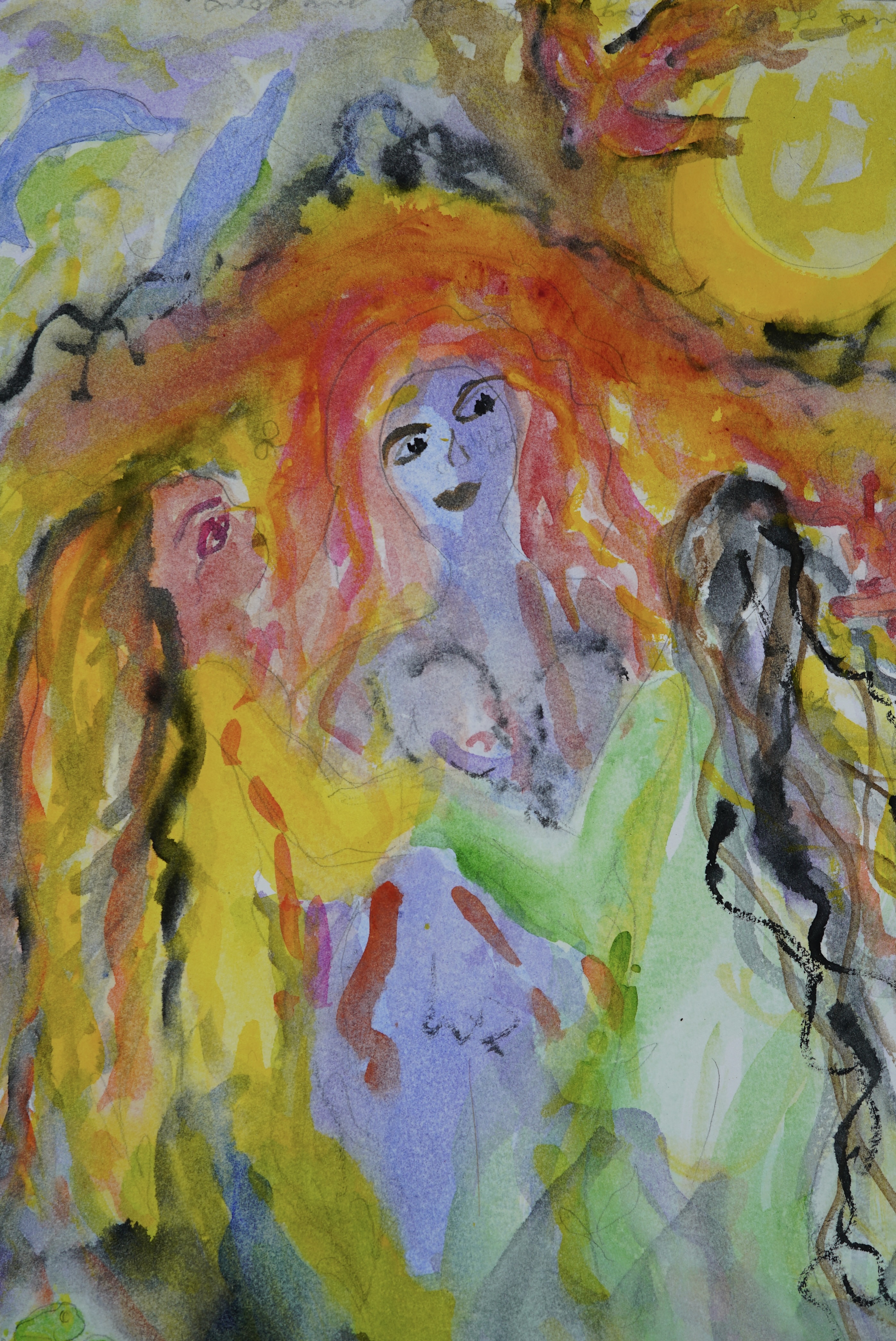 I’ve been redefining myself lately. Into what, I’m not sure but I’m now in my mid-60s and feel like I’m blooming into myself! In an effort to understand what’s happening I’ve been painting a variety of monsters (some of them friendly) and women and imaginary animals. Whatever is happening to me, it feels magical. The world is opening up, my senses are alive, and the wind blows through me.